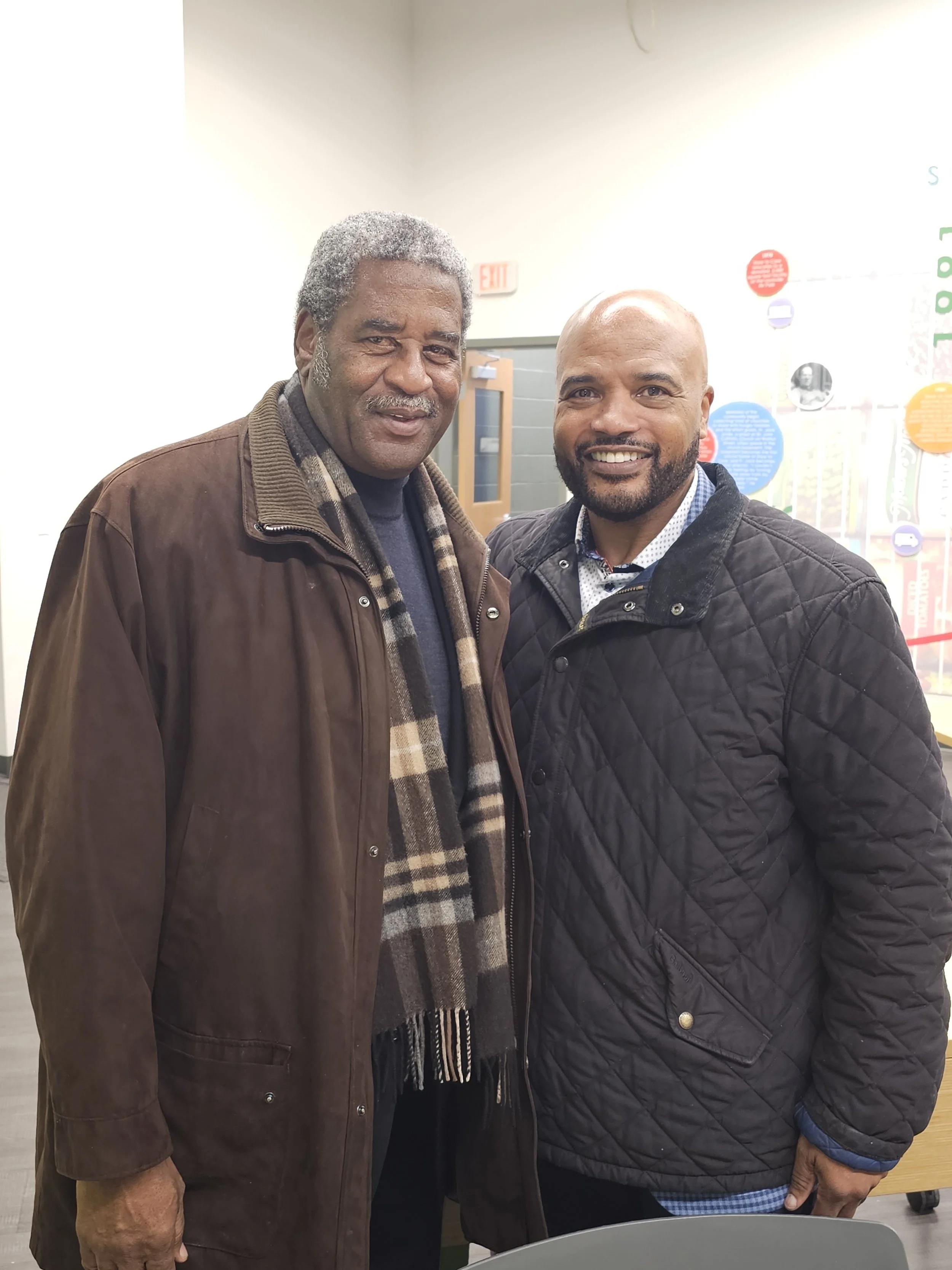 Photo of the President of the NAACP Louisville Branch, Raymond M. Burse, and the CEO/ President of Dare to Care, Vincent James